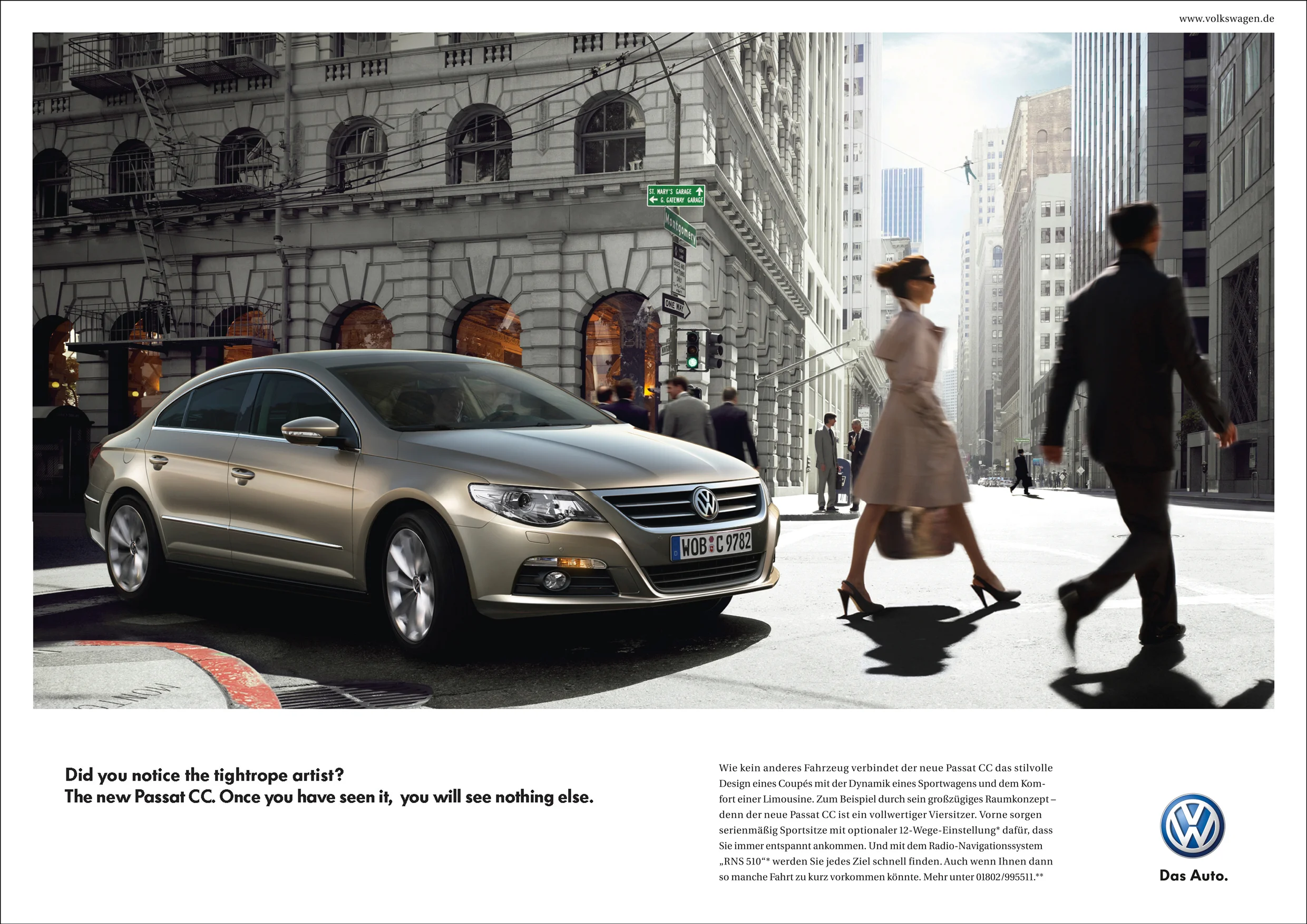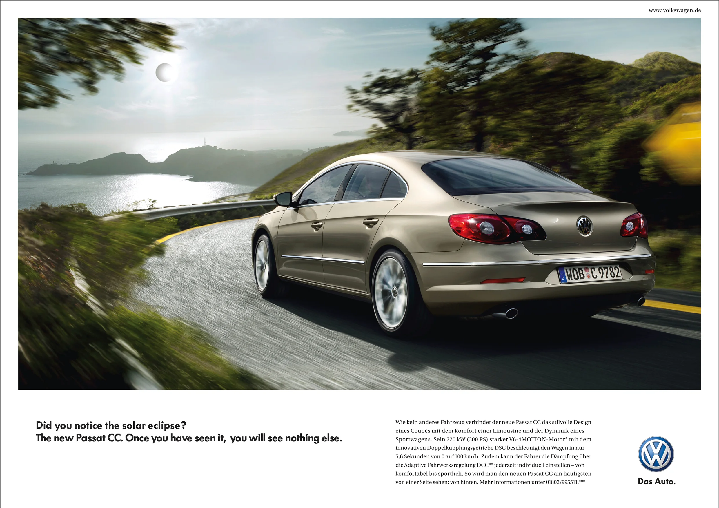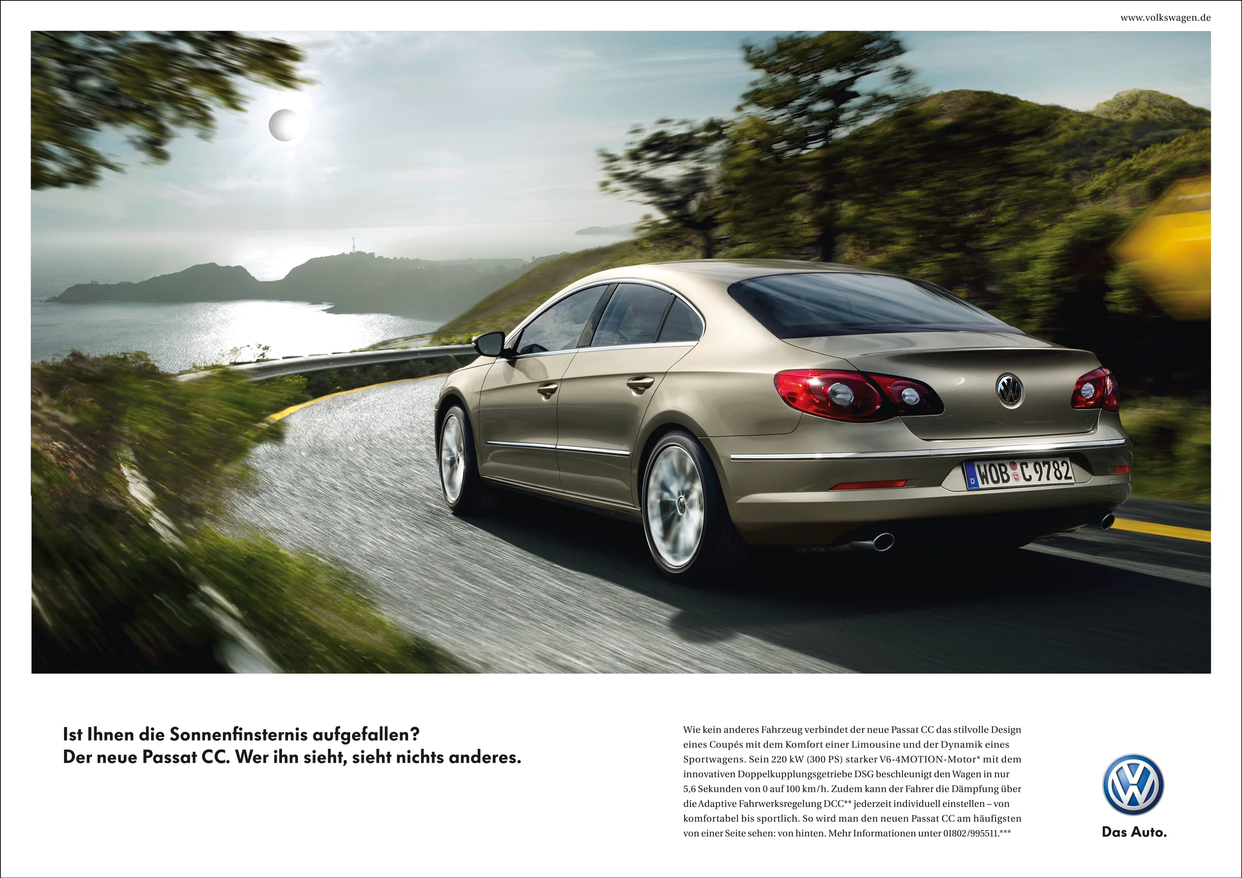 Zur Neueinführung des Passat CC entwickelten wir eine Kampagne mit deutlichem Fokus auf sein Erscheinungsbild, denn im Gegensatz zu dem herkömmlichen Passat glänzt der Passat CC mit seinem außergewöhnlichen Design. Das man sich diesem nicht entziehen kann zeigt unsere integrierte Kampagne "Wer ihn sieht, sieht nichts anderes".