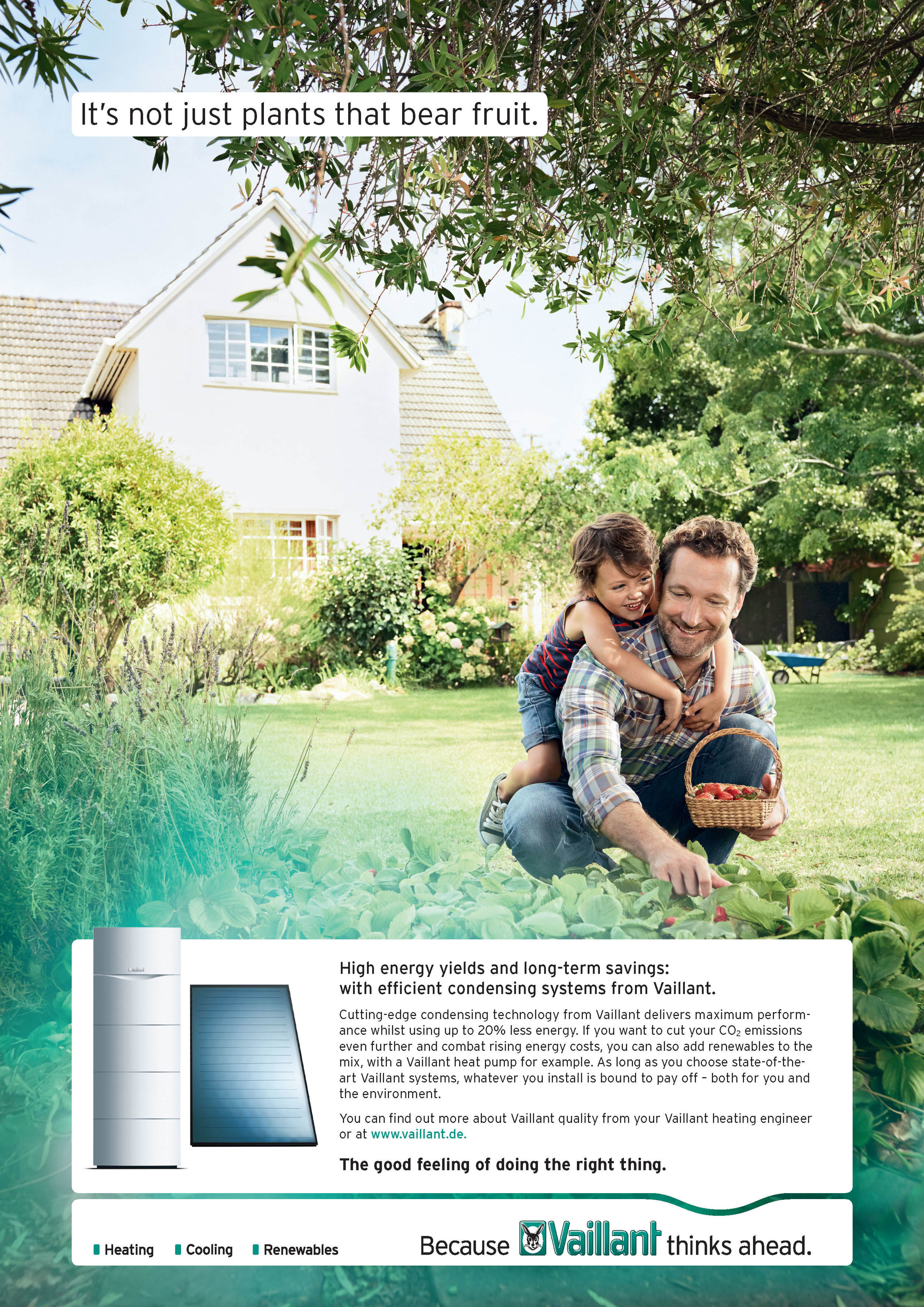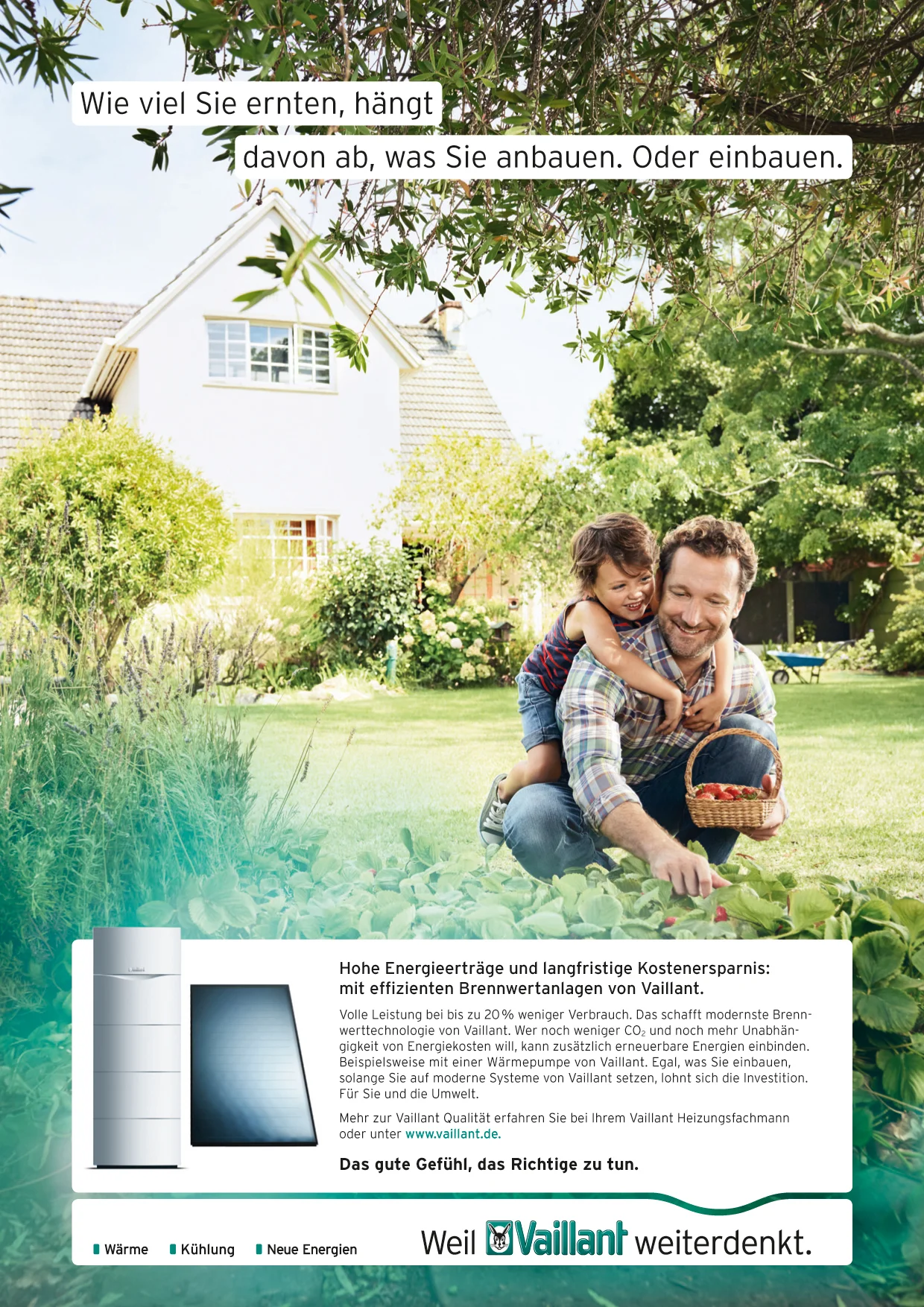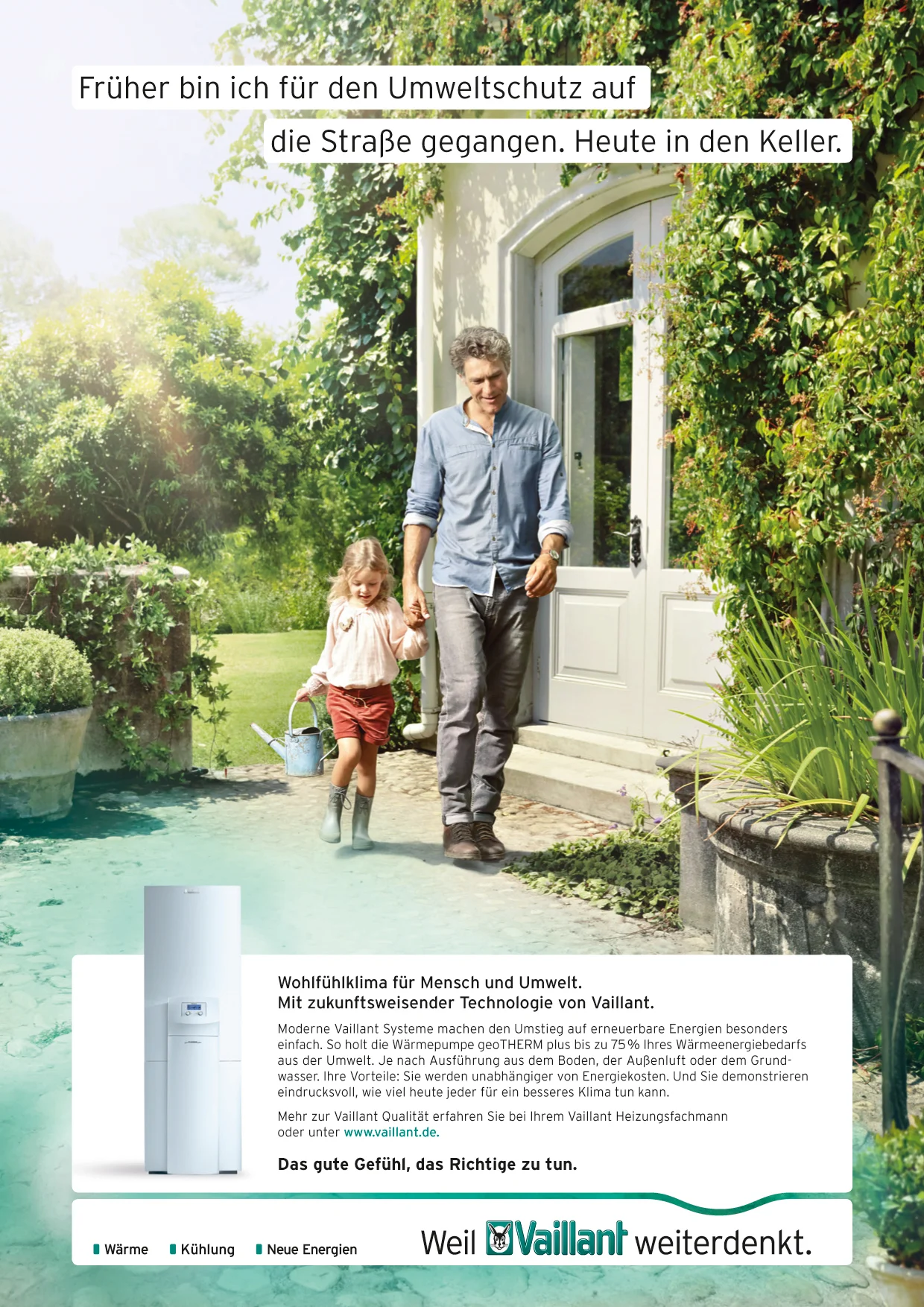 The renowned german company Vaillant puts their focus on sustainability. Therefore we developed a global image-campaign including a new tagline „The good feeling of doing the right thing“. This campaign focusses on the brands values and the importance of sustainable solutions for the future. (Please scroll down for the english Version)