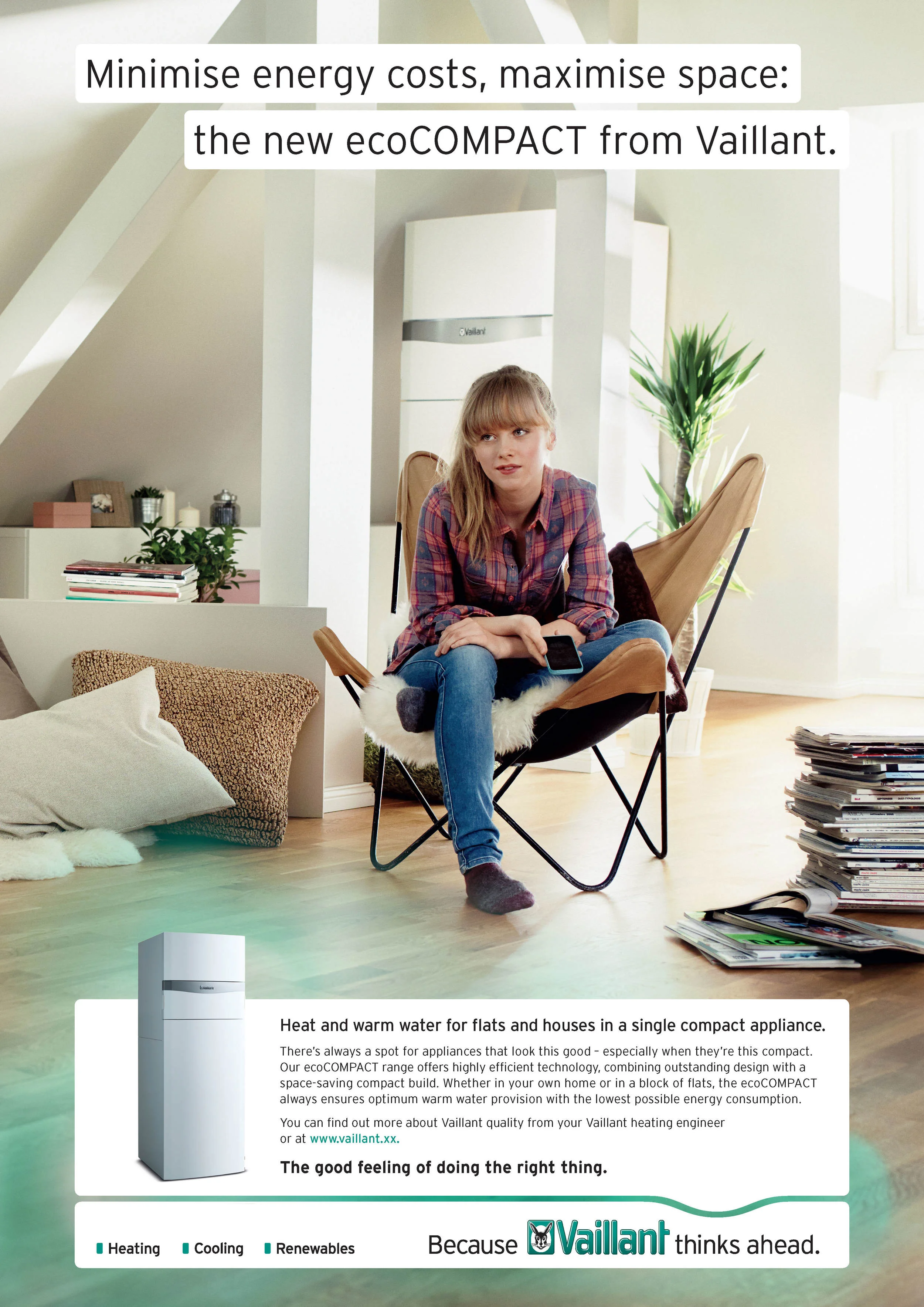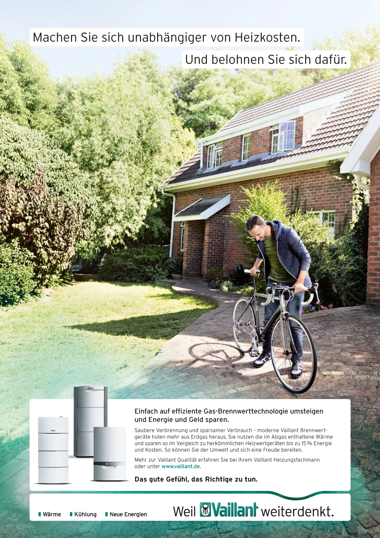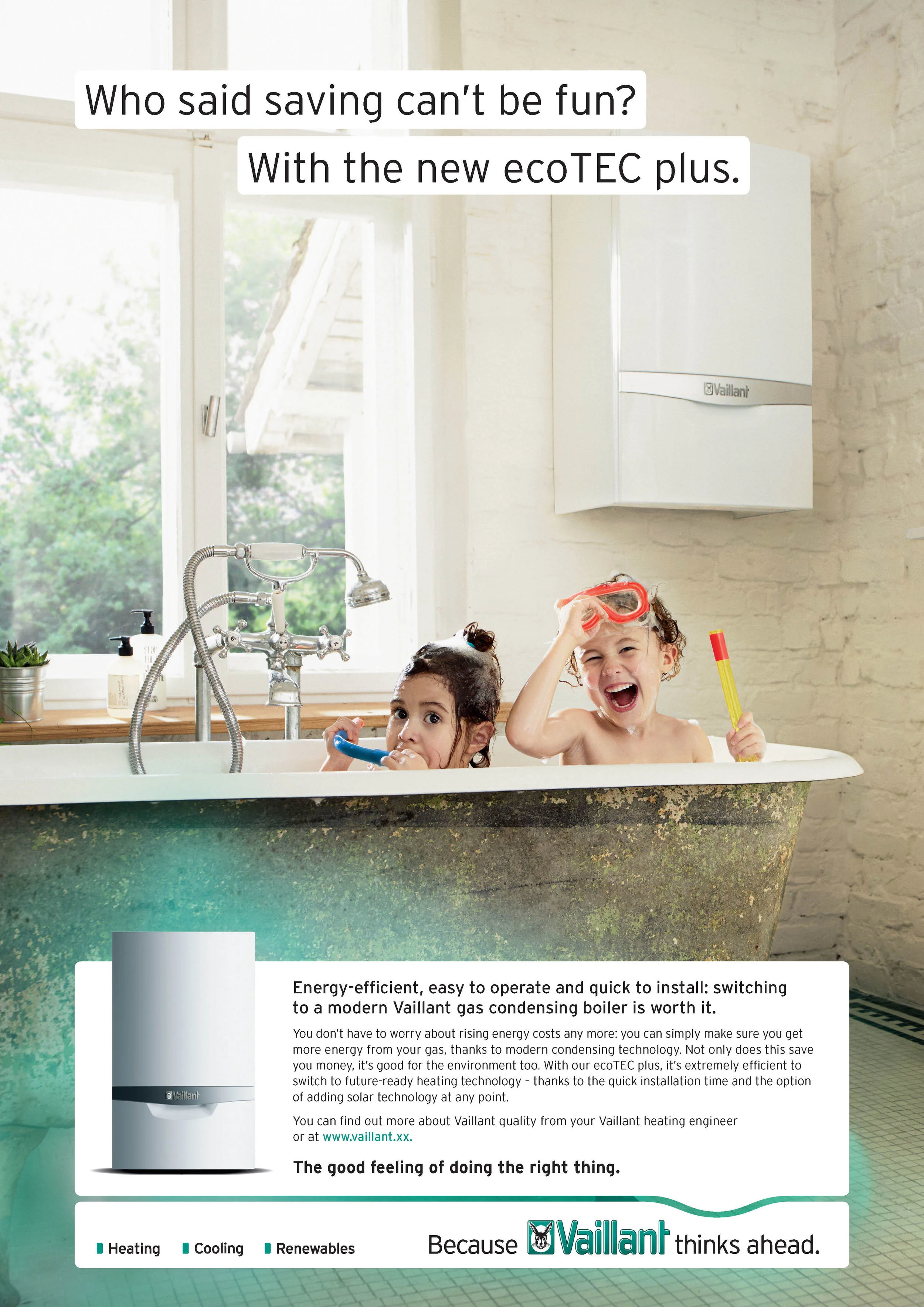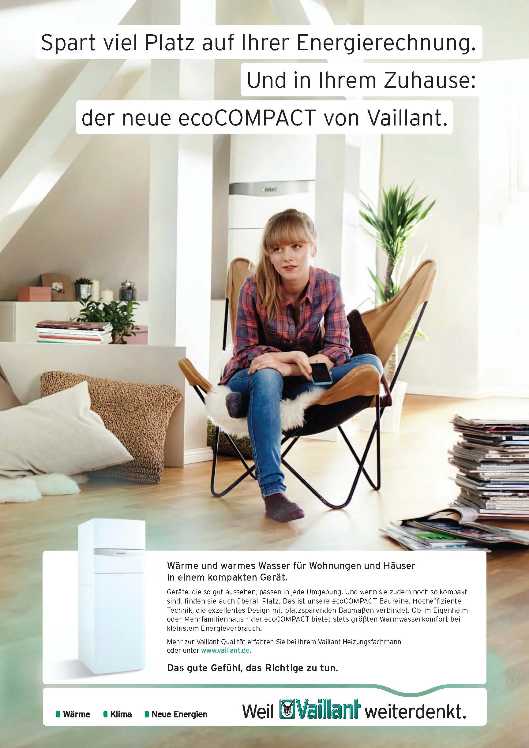 The renowned german company Vaillant puts their focus on sustainability. Therefore we developed a global image-campaign including a new tagline „The good feeling of doing the right thing“. This campaign focusses on the brands values and the importance of sustainable solutions for the future. (Please scroll down for the english Version)