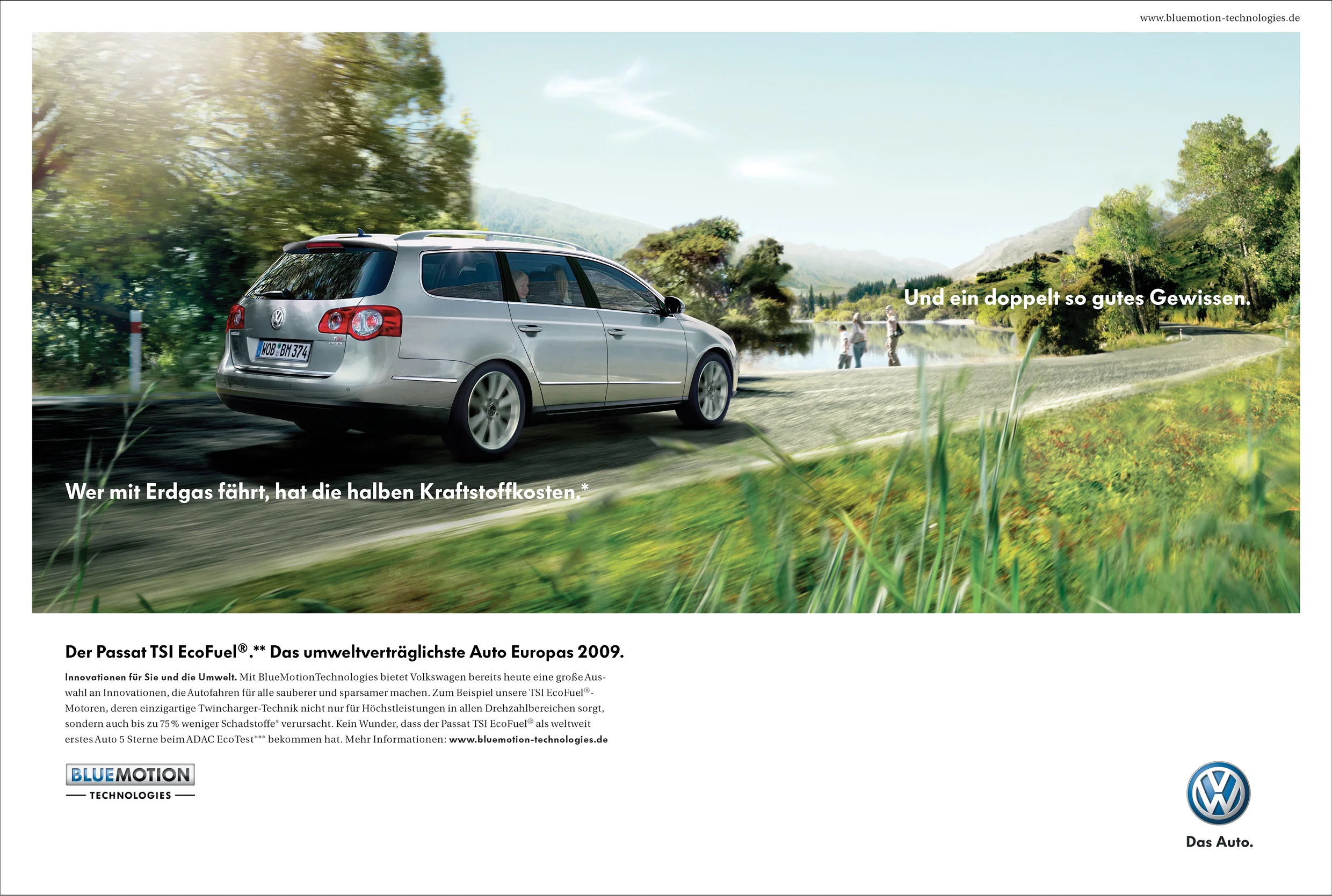 Die BlueMoton Modelle von Volkswagen verbinden zwei Anliegen des Menschen. Etwas Gutes für die Natur zu tun, und etwas Gutes für seinen Geldbeutel zu tun. Um genau diese beiden Vorteile aufzuzeigen entwickelten wir die Kampagne "Ökologie trifft Ökonomie".